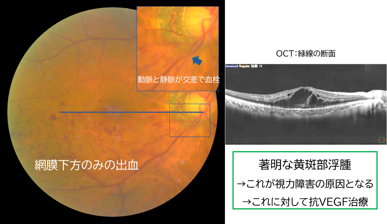 BRVO:出血が上方または下方に限局